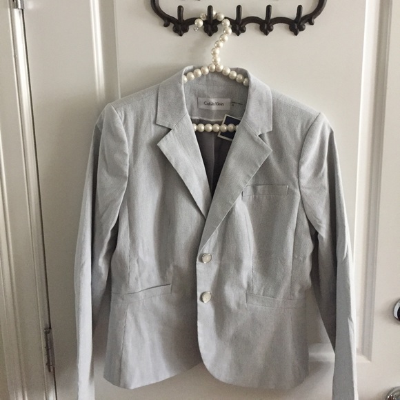 Summer seersucker stripes, mother of Pearl buttons, single vent, NWT