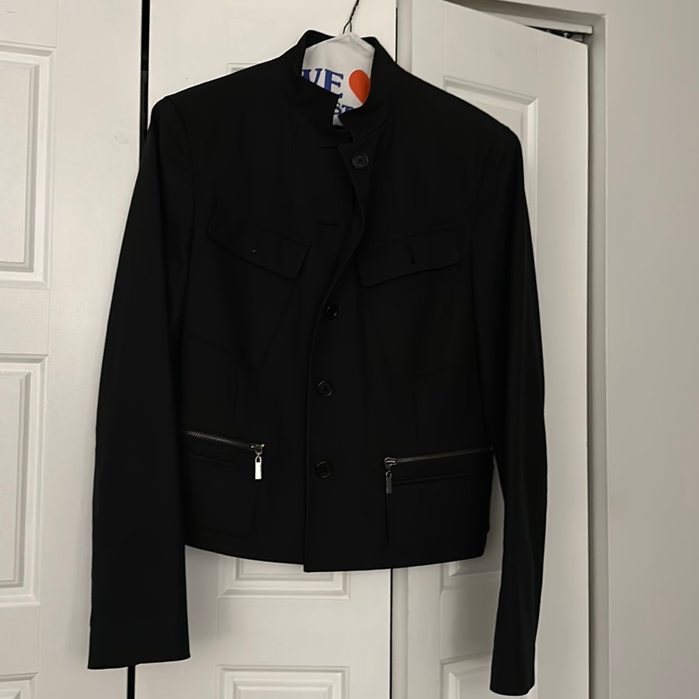 Ladies Calvin Klein dress cropped black buttoned jacket with zipper pockets