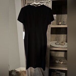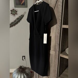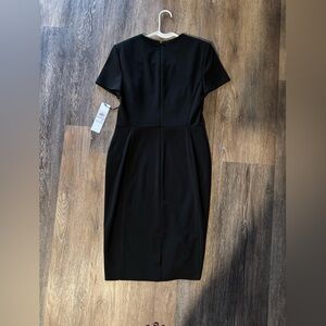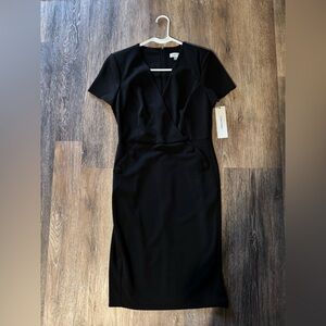 Elevate your fashion sense with this sheath dress featuring a surplice neckline and faux button front.