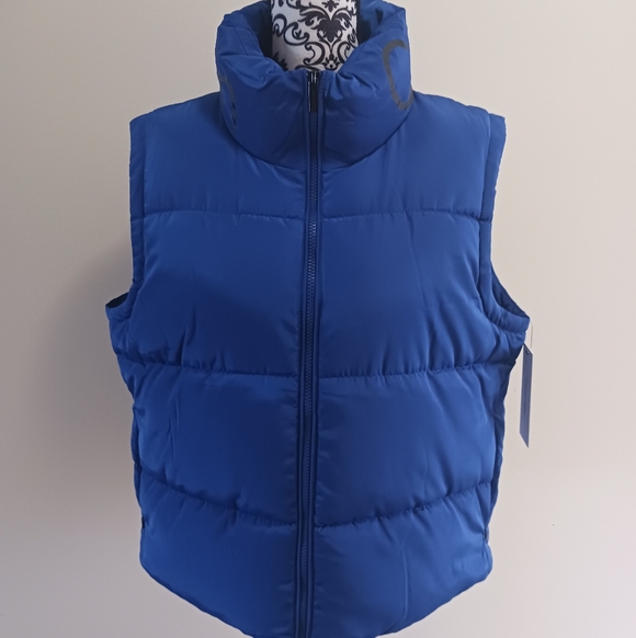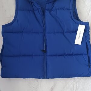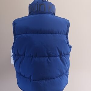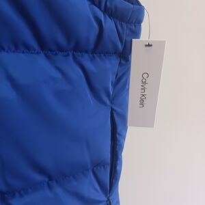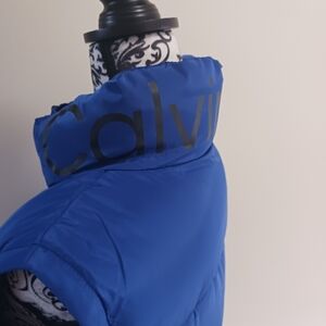 Calvin Klein stylish blue puffer vest with a high collar. Perfect for layering.