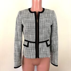 Calvin Klein 6P Black White Tweed Zip Blazer Lady Jacket peplum