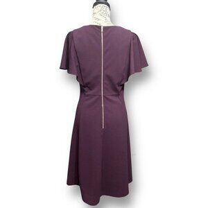 Calvin Klein 8 Plum Purple Midi Dress Flutter Sleeve Zip Back Career Work Office