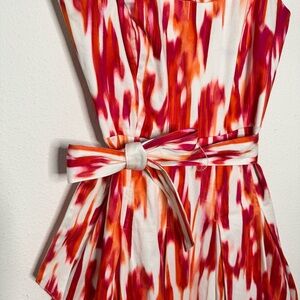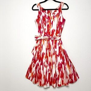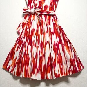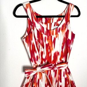 Calvin Klein A line belted sleeveless midi dress white orange pink size 6