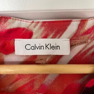 Calvin Klein Abstract Print Long Sleeve High Low Button Up Shirt Womens Medium
