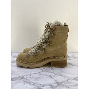 Calvin Klein Alaina Faux Shearling Boot in Light Natural Suede sz 8