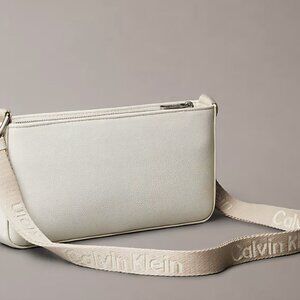 This Calvin Klein crossbody bag blends minimalist design with everyday practicality. Made with a textured soft-white finish, it features a sleek rectangular silhouette and an embossed “cK” logo for a subtle, elevated touch.