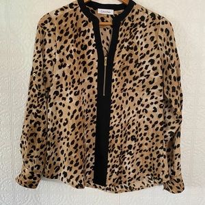 Women’s Calvin Klein Animal Print Leopard Split Neck Zipper with convertible sleeves Size XS