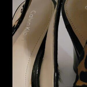 Calvin Klein Animal Print Open Toe Sling Back Heels - Size 8