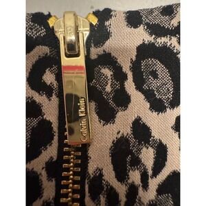 Classic Calvin Klein dress featuring a bold animal print. This sleeveless sheath dress has a fitted silhouette.