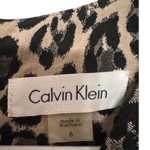 Keywords: Calvin Klein dress, animal print dress, sheath dress, sleeveless dress, fitted dress, career dress, cocktail dress, women's dress, size 6, beige dress, black dress, midi dress, work dress, party dress, bodycon dress