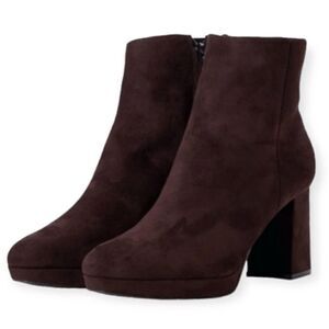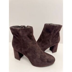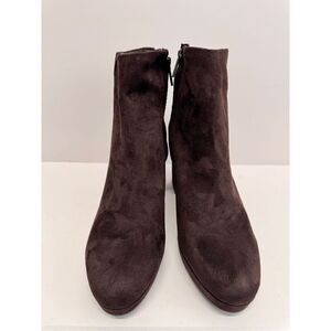 Calvin Klein Ankle Boots Size 8 Brown Block Heel Side Zip Winter Booties