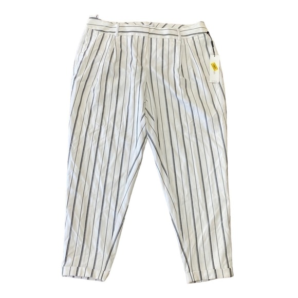 Calvin Klein Ankle Pants Size 14W White Gray Stripe Retail 99.00 NWT