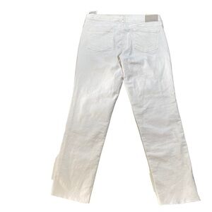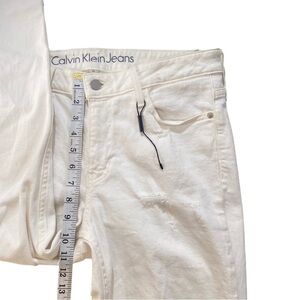 Calvin Klein Ankle Skinny Women’s Optic White Wash Stretch Denim High-Rise (10.5”) Skinny Leg Jeans Size 12 (33” Stretch Waist by My Measurement) with an Inseam of 28”. These jeans are new with tags.