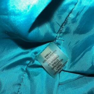 Details: Gorgeous dress for so many occasions. Classic with a little sass. Color looks more blue in the picture than the actual aqua color. You will find it lighter than in pictures. Integrity in great shape. Small seem pull at the bottom of the zipper. Overall tons of life left in this dress