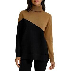 Calvin Klein Asymmetrical ColorBlock Turtleneck Long Sleeve Sweater