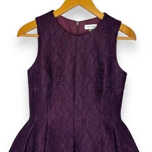 Calvin Klein Aubergine A-Line Lace Dress Size 4 Purple Sleeveless Cocktail Dress