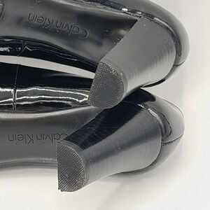 Calvin Klein Babe Black Patent Leather Heels Pumps Stacked Heel in Box 7
