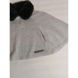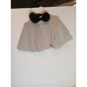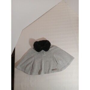 Calvin Klein Baby Jeans Cape Grey Silver Faux Fur Infant Girls Size 6-9 Months. Grey with silver sparkles. Great for your up coming Christmas parties. Buttons up. Black faux fur removable collar. Very cute. In good pre-owned condition. No stains or holes. Pet free and smoke free.