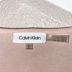 Chic, easy to wear blouse from Calvin Klein. Pale, baby pink with black piping along the sleeves. Lined. Super easy to dress up or down!