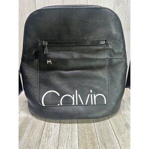 Calvin Klein Backpack Faux Leather Black Zipper Luxury Bag Excellent 13" Tall