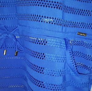 Super cute royal blue mesh material with drawstring waist and pockets. Very well made, mint condition.