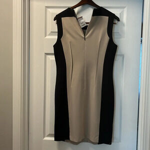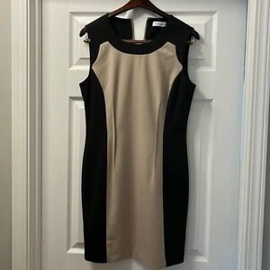 Calvin Klein Beige Black Color Block Sheath dress size 8