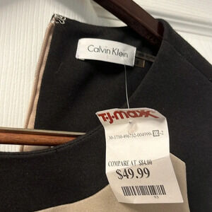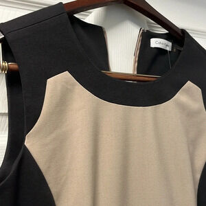 Calvin Klein beige and black color block sheath dress size 8 featuring folded princess seams fully lined contrast, color, block , medium, length back zipper sleeveless new with tags