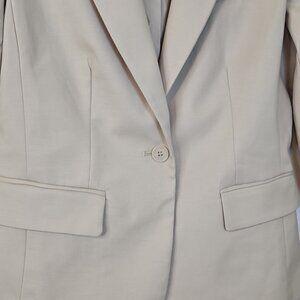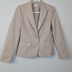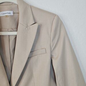 Step into timeless elegance with this Calvin Klein tailored blazer in a sophisticated neutral beige tone.