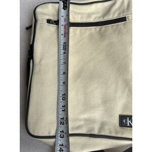 Calvin Klein Beige Canvas Crossbody Bag With Black Strap & Zipper