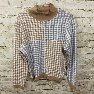 Calvin Klein Womens Large Beige Gray Houndstooth Mock Neck Soft Sweater in like new condition. No stains, tears or rips.