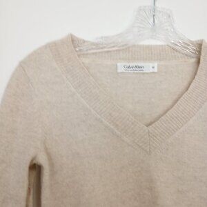 Calvin Klein Beige Italian Merino Wool V-Neck Sweater