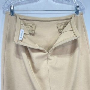 Calvin Klein Beige Skit Sz 10P Gold Zipper Accent Stretch Straight Pencil Skirt
