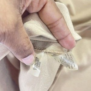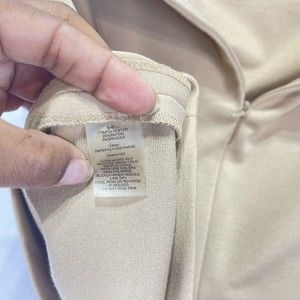 Add a touch of style to your wardrobe with this Calvin Klein beige skirt. The skirt is designed to fit perfectly with its size 10P, straight pencil style, and knee-length design. The gold zipper accent complements the solid pattern and the American theme of the skirt.