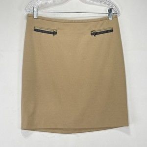 Calvin Klein Beige Skit Sz 10P Gold Zipper Accent Stretch Straight Pencil Skirt Shipping ( in 1 business day.)