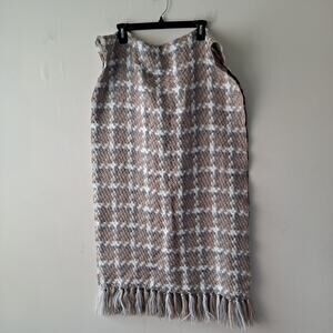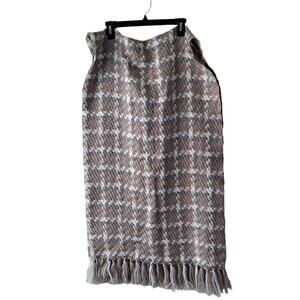 Calvin Klein Beige Tan & Olive Green Basket Weave Chunky Knit Scarf - Size 23" x 75"