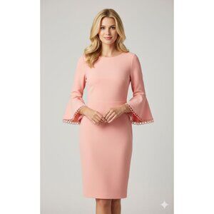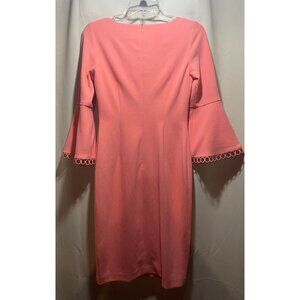 Calvin Klein Bell Sleeve Pink Sheath Dress With Circle Trim Detail Size 2