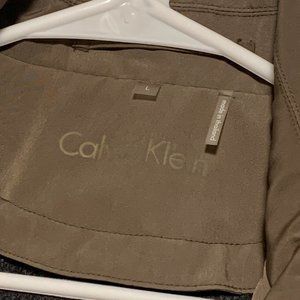 - Beautiful belted trench coat from Calvin Klein, a classic style staple. Tortoiseshell button details with removable liner. 2nd picture is closest to true color.
