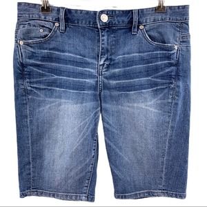 Whisker fading, 5 pocket jean shorts. Slouchy slim style size 27/4. Very good preowned condition.