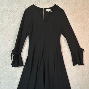 Calvin Klein Black A-Line Dress with V-Neck and Bell Sleeves NWOT
