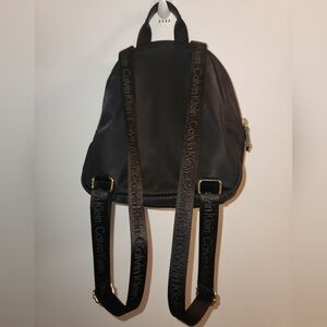 Calvin Klein Black Backpack with Gold Zippers and Smooth Finish