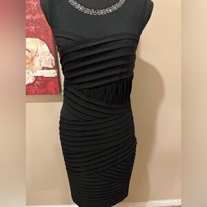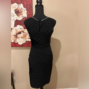 Calvin Klein Black Beaded Neck Bandage Cocktail Dress, Mesh Back & Chest, size M