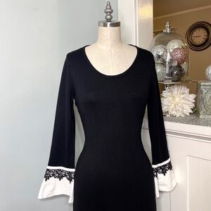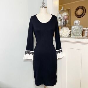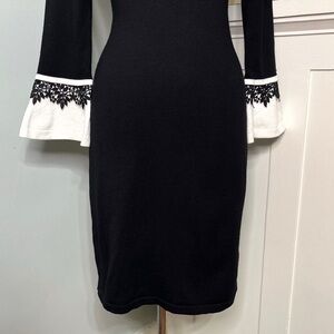 Calvin Klein Black Bell Sleeve Sweater Sheath Dress Small
