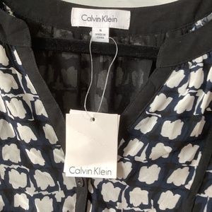 Calvin Klein Black, Blue, White Pattern, Sheer Blouse Size Small