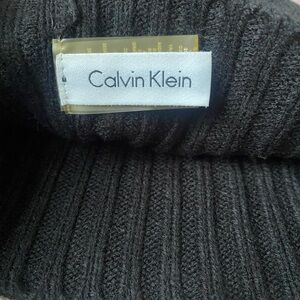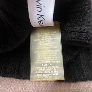 Calvin Klein black cable knit acrylic beanie winter hat, unisex one size. In good preowned condition.