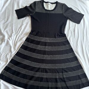 Calvin Klein Black Cream Midi Length Swing Dress M for Office or Dinner