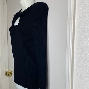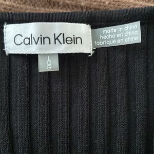 This Calvin Klein sweater showcases a sophisticated ribbed knit texture in a timeless black hue. Its crew neck design and form-fitting silhouette make it an essential piece for any wardrobe, ideal for layering or wearing on its own. Excellent Conditions. 06/15