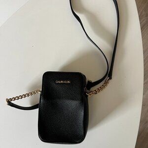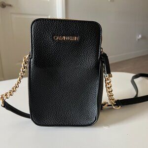 Calvin Klein Black Crossbody Bag | Gold Chain Detail | Small Purse