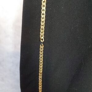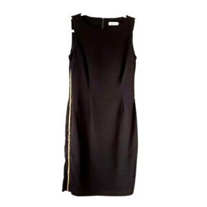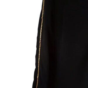 Black Pencil dress in black with gold details down the sides. Zip back. A small gap in the gold detail as shown in pics. Otherwise in great condition.