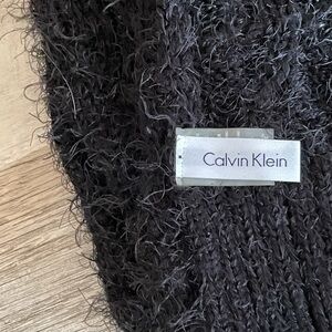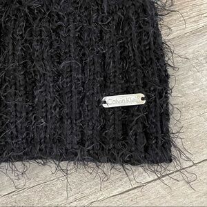 🌺 Calvin Klein Black Eyelash Fuzzy Texture Cozy Black Small Scarf