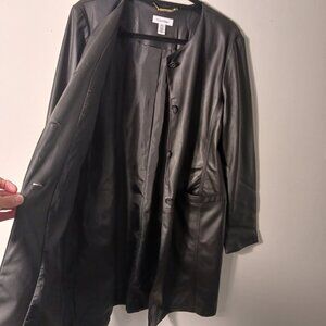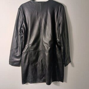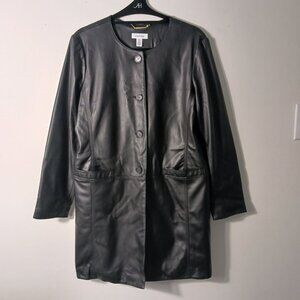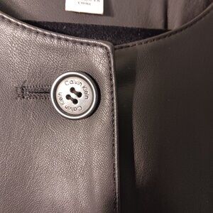 Calvin Klein Black Faux Leather Lightweight Coat, Size Medium Classic, Vegan, no collar, 2 Front pockets, Lined. Excellent pre-owned condition.